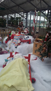 Het tuincentrum was nog geheel in kerststijl. Om
